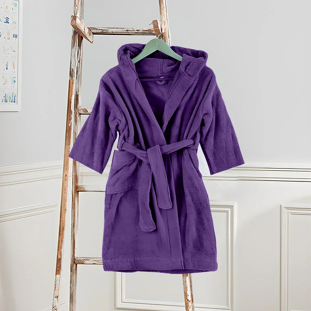 - رداء حمام فاخر - رداء حمام دافوديل للأطفال للجنسين بغطاء رأس مصنوع من أجود أنواع القطن الناعم بنسبة 100%، بملمس مخملي، مما يضمن امتصاصًا ممتازًا، ويجمع بين نعومة فاخرة على البشرة وخفة وزن فائقة للأطفال. يتميز الرداء بياقة بغطاء رأس لمزيد من الدفء، وجيبين أماميين، وأساور عريضة، وحزام مطابق.