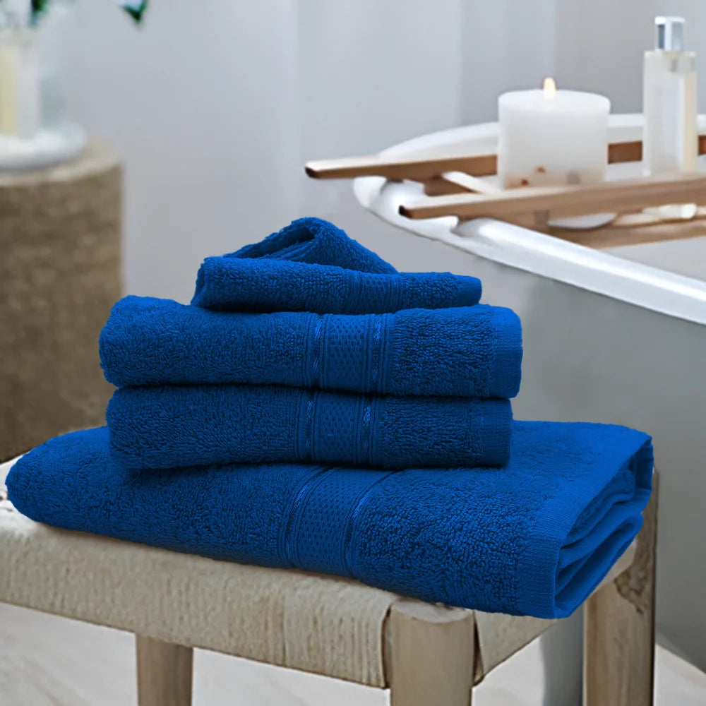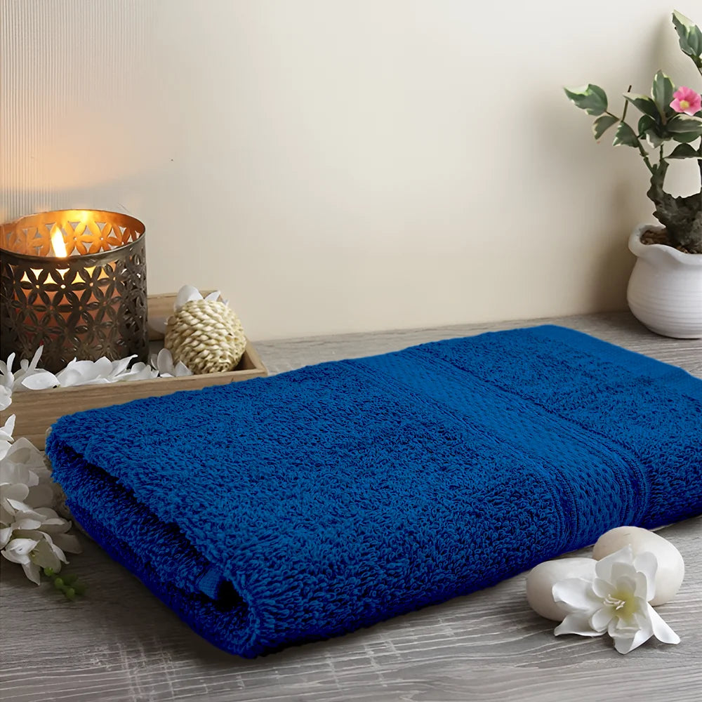 منشفة حمام قطنية فاخرة بنقشة زهرة النرجس من BYFT باللون الأزرق الملكي - ناعمة، ماصة، سريعة الجفاف، وزنها 500 جرام لكل متر مربع