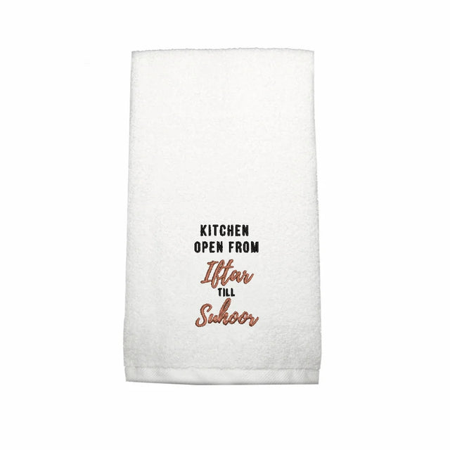 منشفة يد قطنية مخصصة مطرزة خصيصًا لك من BYFT - مطبخ مفتوح من الإفطار حتى السحور بتصميم تطريز عالي الجودة مثالي للهدايا