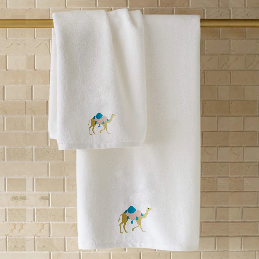 منشفة قطنية مخصصة مطرزة خصيصًا لك من BYFT - لون جمل - تصميم أزرق للأب، تطريز عالي الجودة، مثالية للهدايا