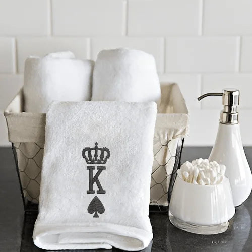 منشفة قطنية مخصصة مطرزة خصيصًا لك من BYFT - تصميم Crown King Spades تطريز عالي الجودة مثالي للهدايا