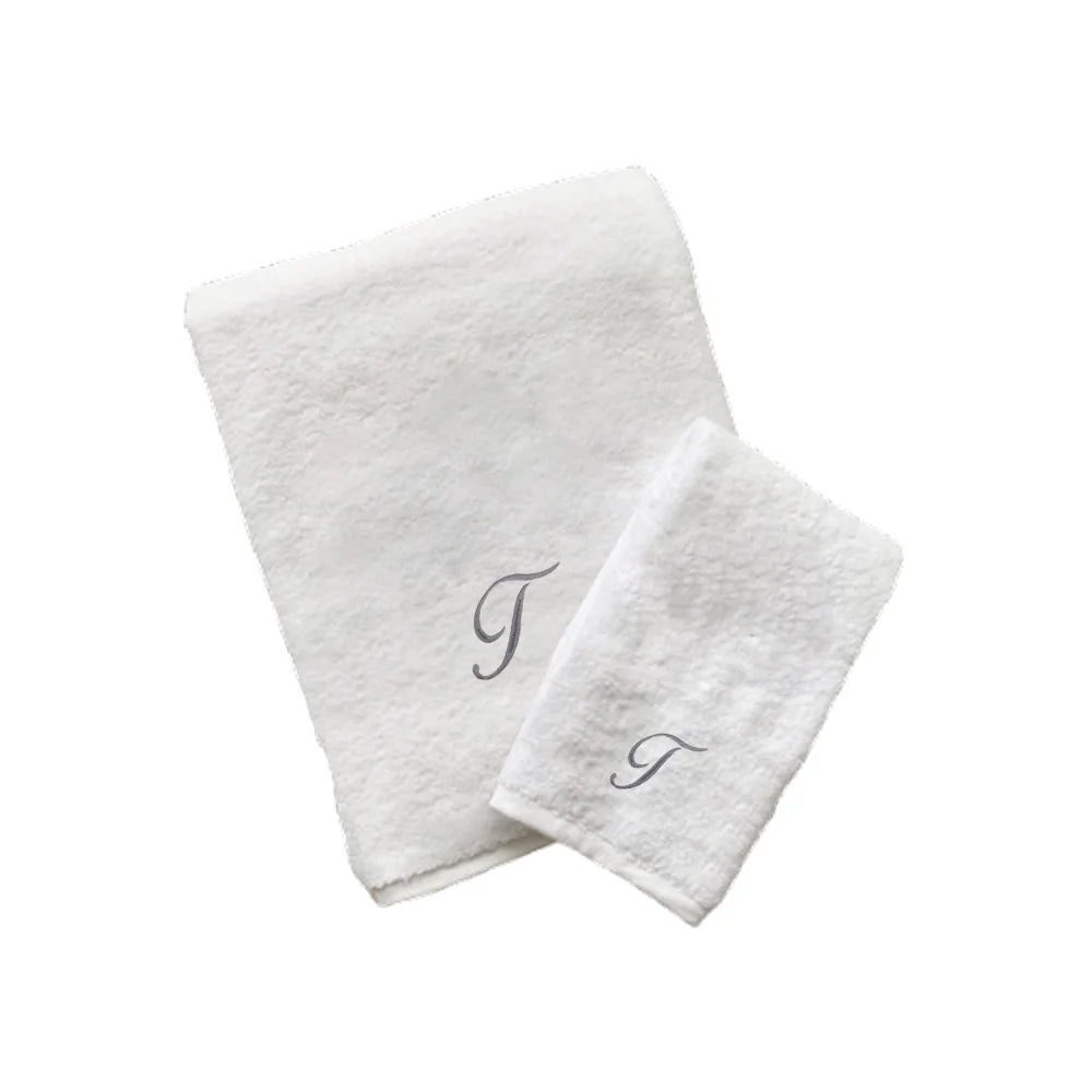 منشفة BYFT المطرزة خصيصًا لك، مصنوعة من القطن الخالص، بخيوط فضية، تحمل الأحرف الأولى/الحرف/الأبجدية، مثالية للهدايا