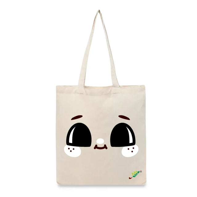 BYFT Adorable Smile Tote Bag – Cute Wide-Eyed Printed Reusable Tote | Eco-Friendly Daily Carry Bag (Set of 1)