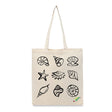 Embrace the calming essence of the sea with the BYFT Ocean Gems Printed Tote Bag. This sophisticated accessory showcases a beautiful 3x3 grid of nine hand-drawn marine treasures, including a variety of intricate conch shells, a scallop with a pearl, a classic starfish, and a nautilus. The clean, black-and-white art style highlights the unique textures and shapes of each "gem," making it a versatile piece for beach lovers and fans of minimalist nautical decor. Designed for both durability and style, this eco-friendly carryall is the perfect companion for your next seaside escape, a trip to the local market, or simply adding a coastal vibe to your daily commute.
