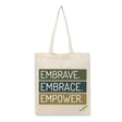 BYFT Inspirational Typography Tote Bag – “Embrave. Embrace. Empower.” Printed Reusable Tote | Eco-Friendly Daily Carry Bag (Set of 1)