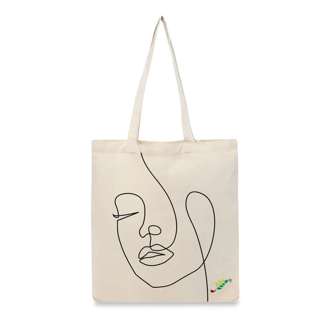 BYFT Minimalist Face Art Tote Bag – “Line of Being” One-Line Printed Reusable Tote | Eco-Friendly Daily Carry Bag (Set of 1)