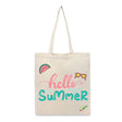 BYFT Tropical Beach Tote Bag – “Hello Summer” Script with Watermelon & Sunglasses Reusable Tote | Eco-Friendly Daily Carry Bag (Set of 1)