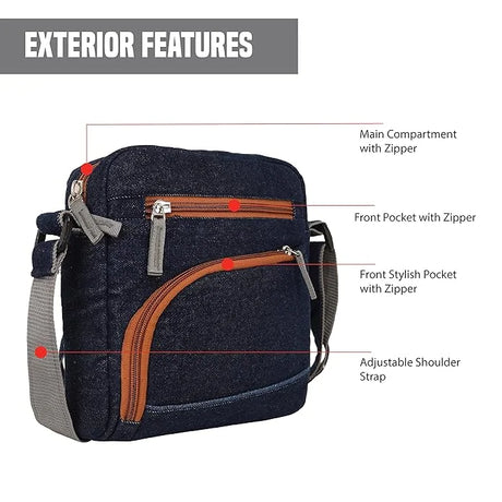 The Purani Jeans Denim & Canvas Mobile Sling with PU Accent | Blue Denim Crossbody Bag