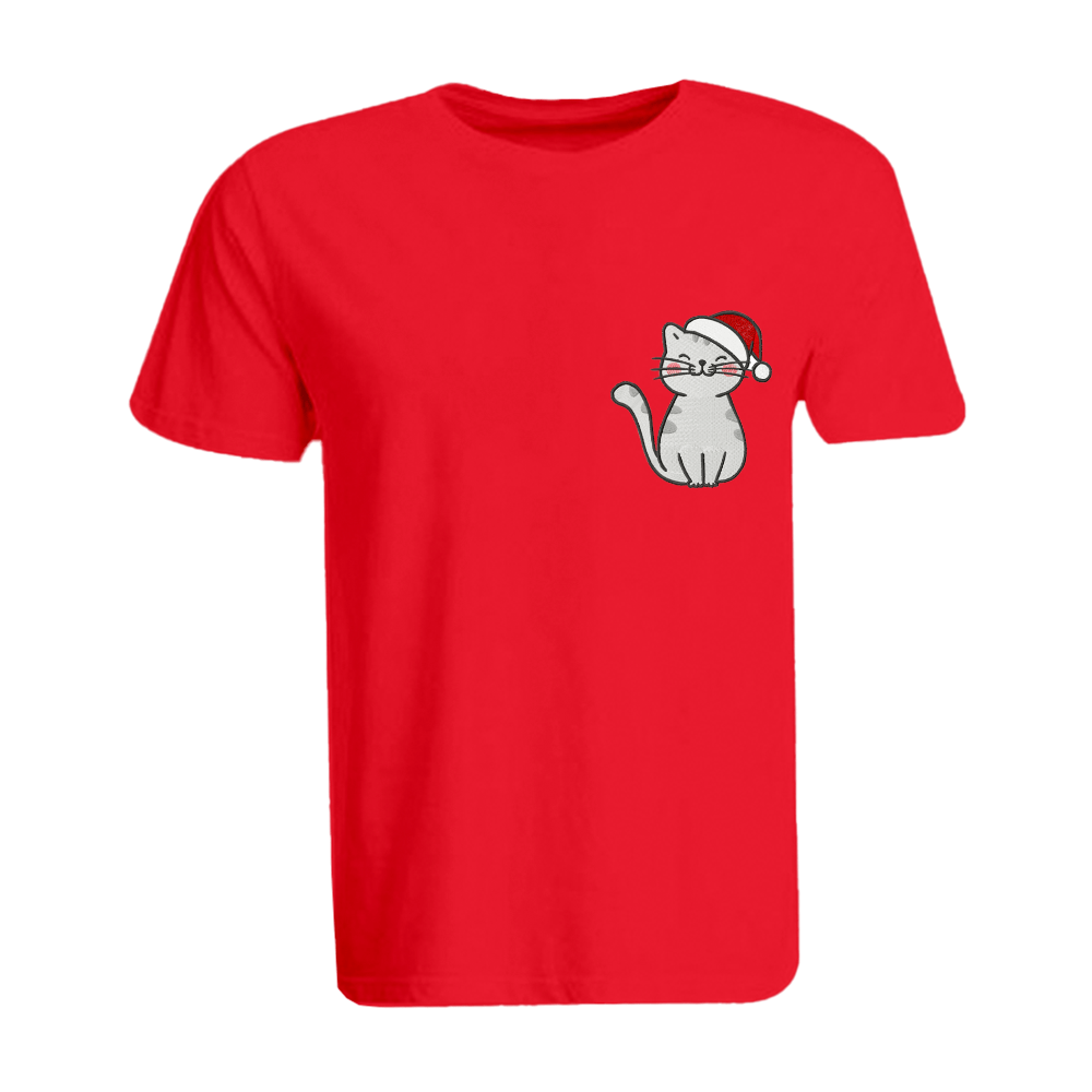 تيشيرتات BYFT المطرزة خصيصًا لك، بتصميم قطة مع قبعة عيد الميلاد