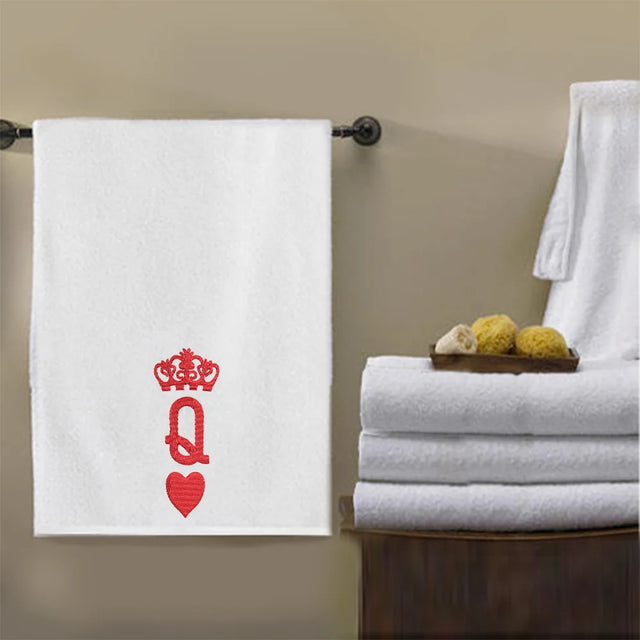 منشفة قطنية مخصصة مطرزة خصيصًا لك من BYFT - تصميم قلب ملكة التاج، تطريز عالي الجودة، مثالية للهدايا