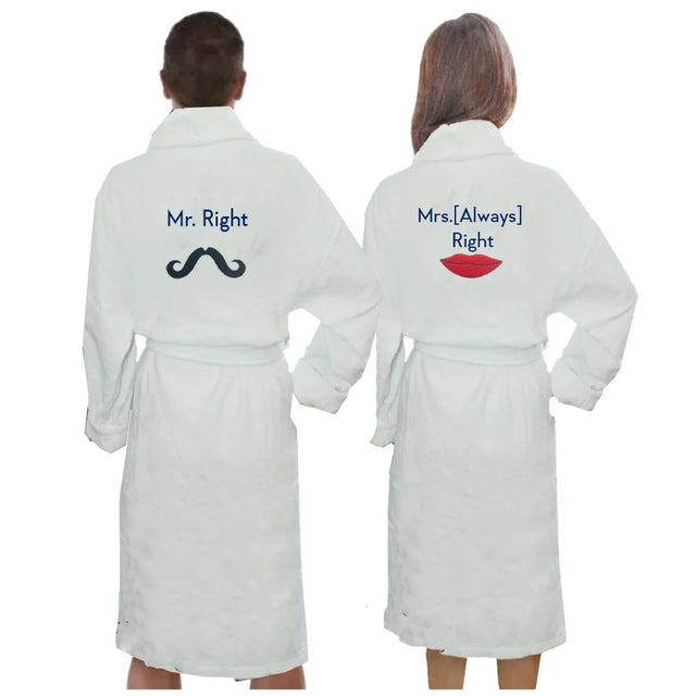 رداء حمام مخصص للأزواج من BYFT مطرز خصيصًا لك - تصميم السيد المناسب والسيدة دائمًا على حق، تطريز عالي الجودة، مثالي للإهداء