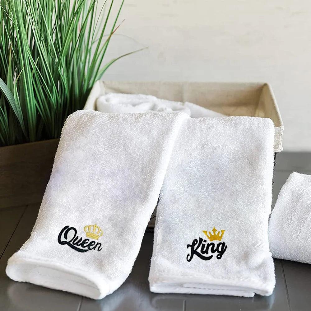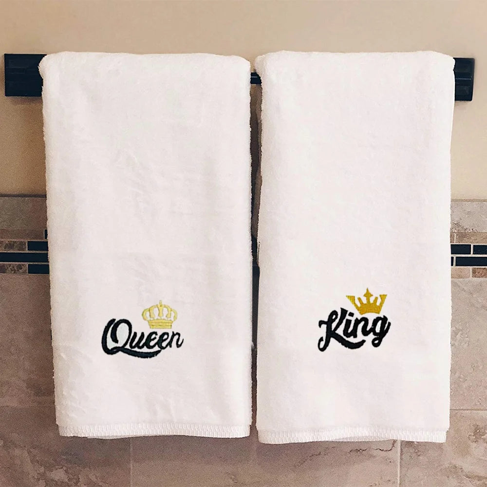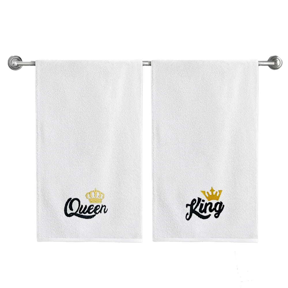 منشفة BYFT المطرزة خصيصًا لك للأزواج - تصميم ملك وملكة، تطريز عالي الجودة، مثالية للهدايا
