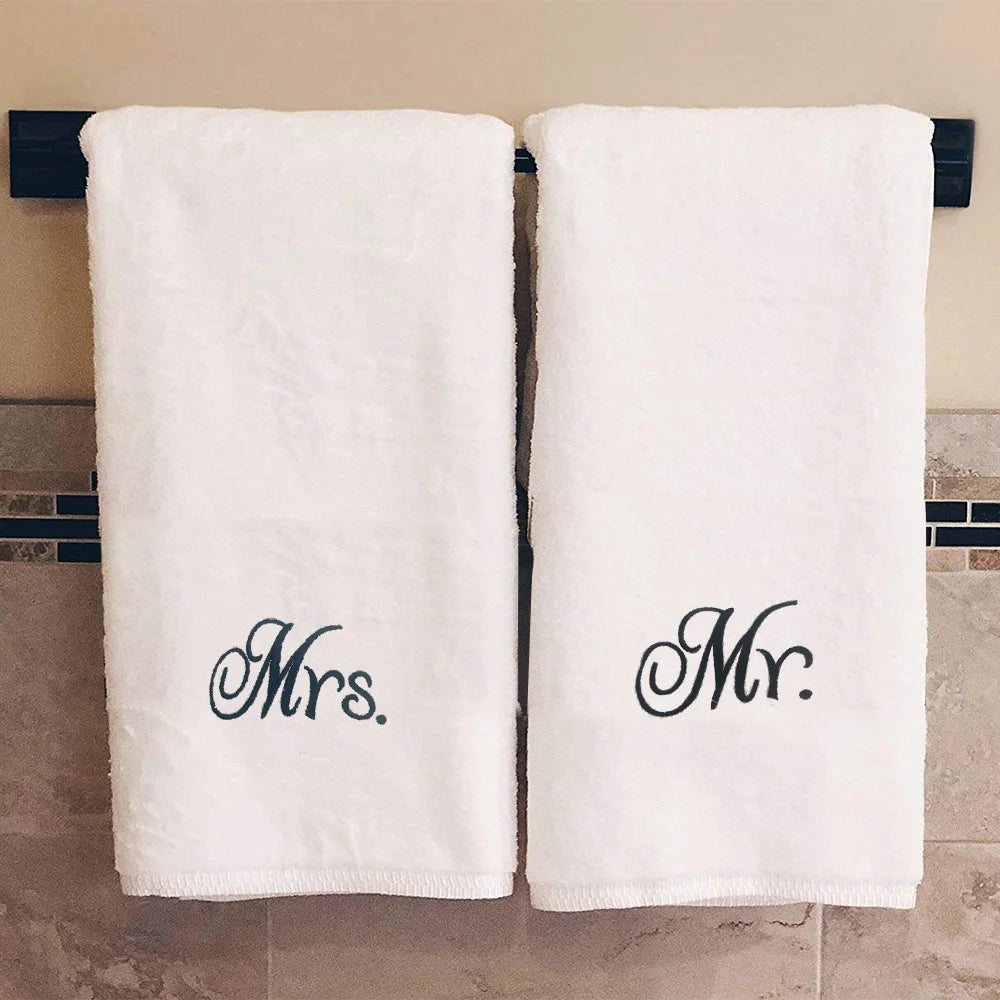 منشفة BYFT المطرزة خصيصًا لك للأزواج - تصميم السيد والسيدة، تطريز عالي الجودة، مثالية للإهداء