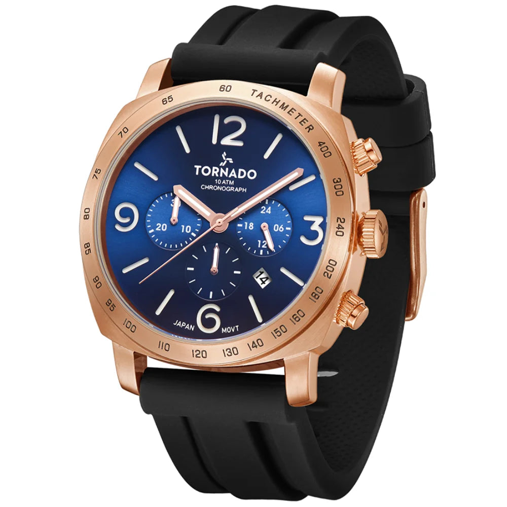 ساعة تورنادو للرجال، حركة كوارتز يابانية، شاشة كرونوغراف وحزام سيليكون - T9102-Ksbn، أسود