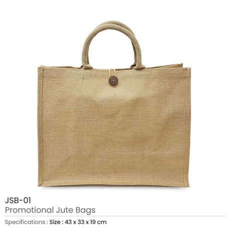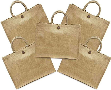 حقيبة جوت طبيعية من BYFT مع زر 43 × 34 × 19 سم، مجموعة من قطعة واحدة