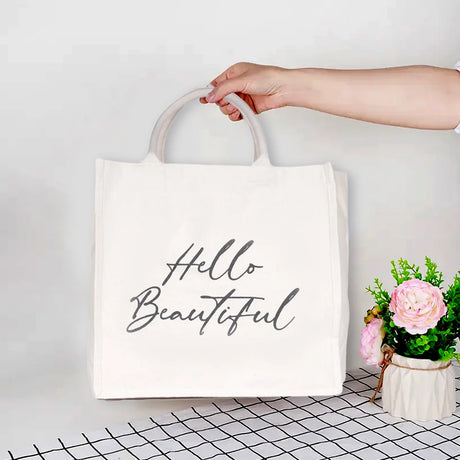 حقيبة BYFT المصنوعة من القماش الطبيعي المغلف (مرحباً بالجميلة) بتصميم