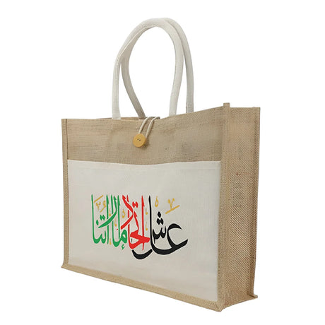 حقائب تسوق BYFT من الجوت المغلفة مع حزام (طبيعي) قابلة لإعادة الاستخدام وصديقة للبيئة (Jttbts145176)