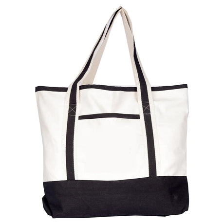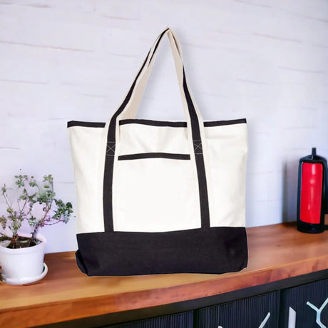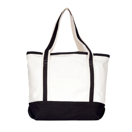 حقيبة BYFT من قماش القطن الطبيعي بمقابض شريطية سوداء