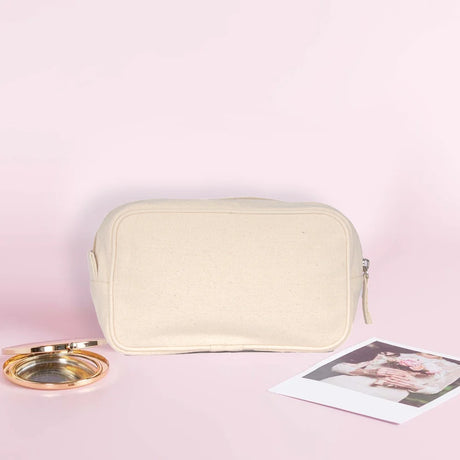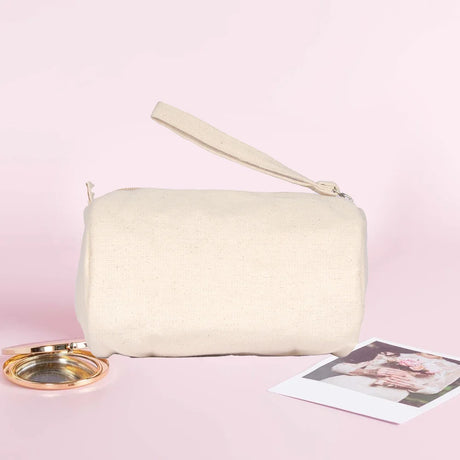 حقيبة مستحضرات تجميل من القطن الطبيعي من BYFT مع حواف جانبية