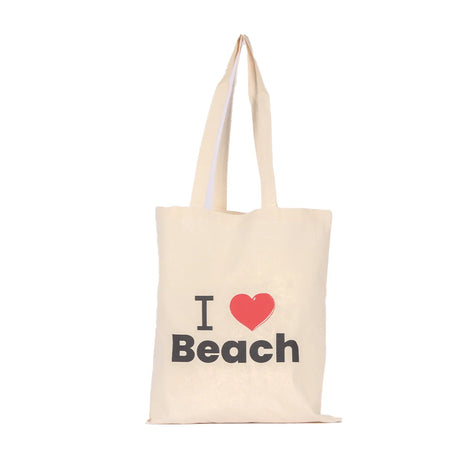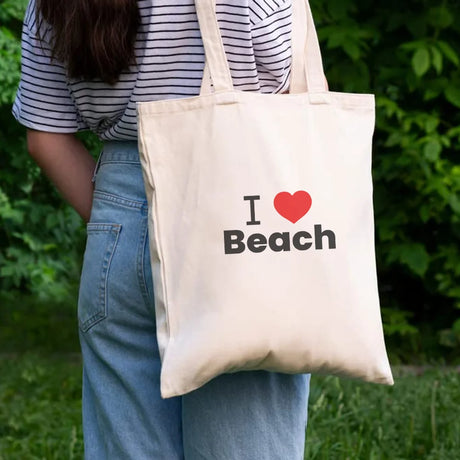 حقيبة توت مسطحة من القطن الطبيعي من BYFT بتصميم (أحب الشاطئ)