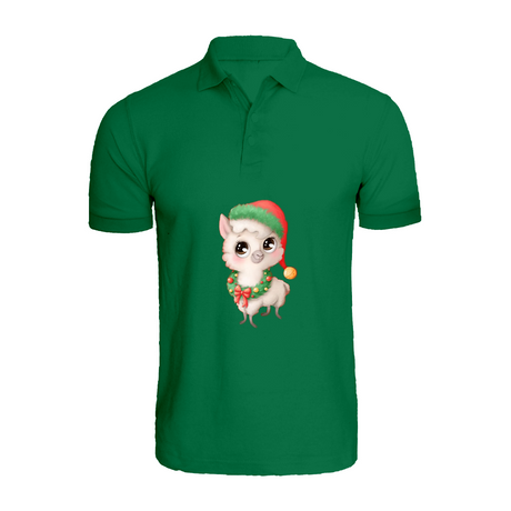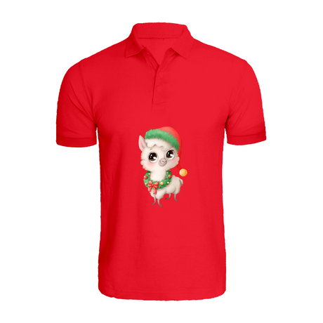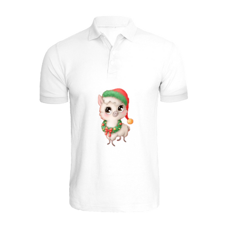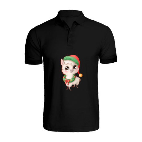 BYFT Printed Christmas Designed T-Shirt - Llama with Christmas Cap