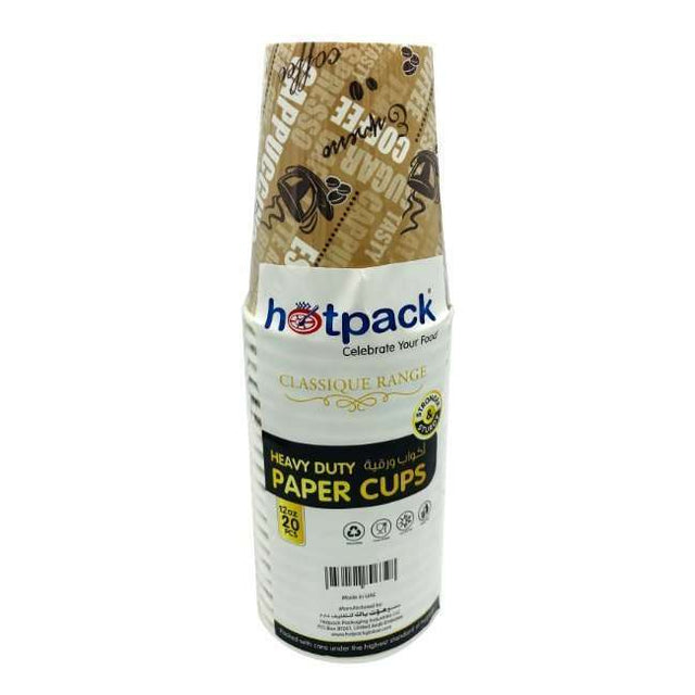 أكواب ورقية متينة من هوت باك، سعة ١٢ أونصة - ٢٠ قطعة | أكواب ساخنة للاستخدام مرة واحدة