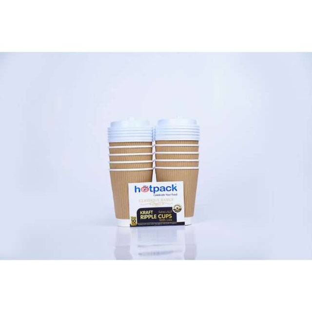 أكواب ورقية مموجة من هوت باك، سعة ١٢ أونصة، مع غطاء - ١٠ قطع | أكواب مشروبات ساخنة