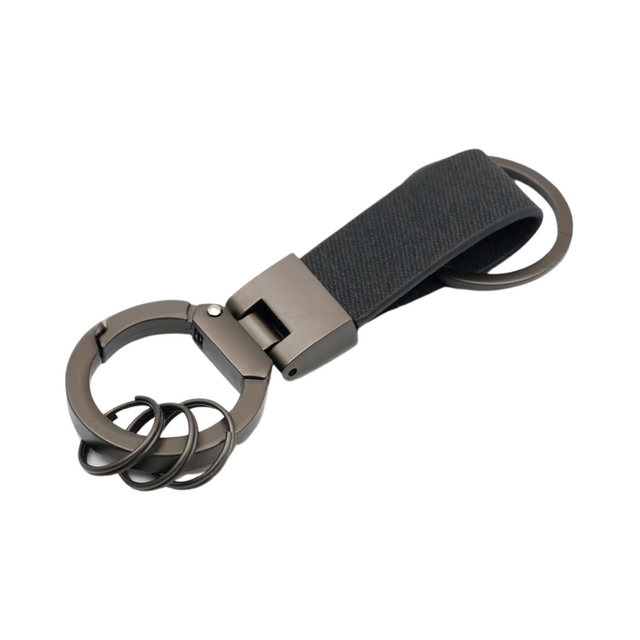 • Easy push open and lock spring system keholder in PU and gunblack metal finishing combination.