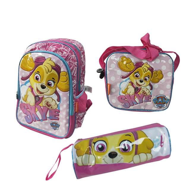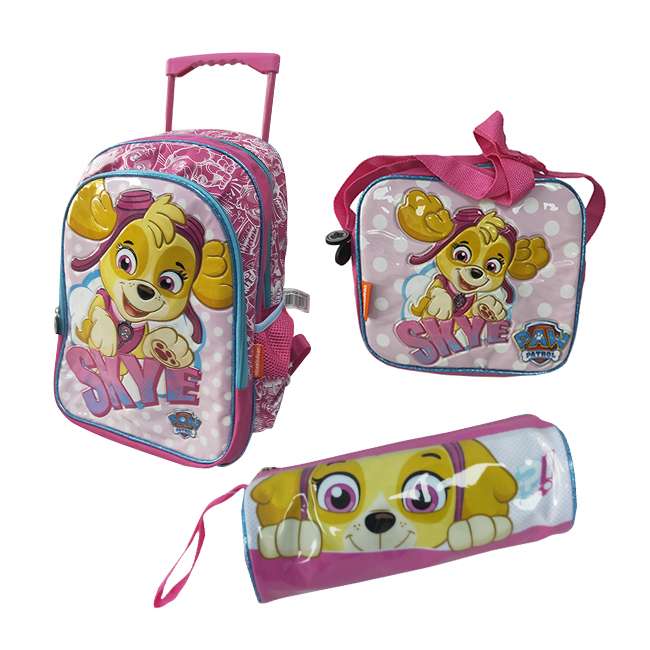 مجموعة مدرسة باو باترول للبنات - حقيبة ظهر أو حقيبة ترولي، حقيبة غداء معزولة، وحقيبة أقلام