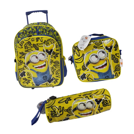 مجموعة حقائب مدرسية للأطفال من مينيونز - حقيبة ظهر أو عربة، حقيبة غداء وحافظة أقلام