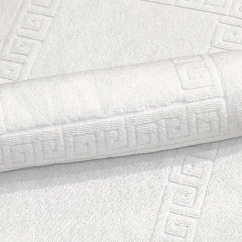 - تصميم جاكار يوناني لإضفاء لمسة من الفخامة - تتميز سجادة حمامنا بتصميم جاكار يوناني جميل، مما يضفي لمسة من الأناقة والرقي على ديكور حمامك. حوّل حمامك إلى منتجعك الخاص مع هذه السجادات القطنية فائقة النعومة والمريحة بتصميم يوناني.