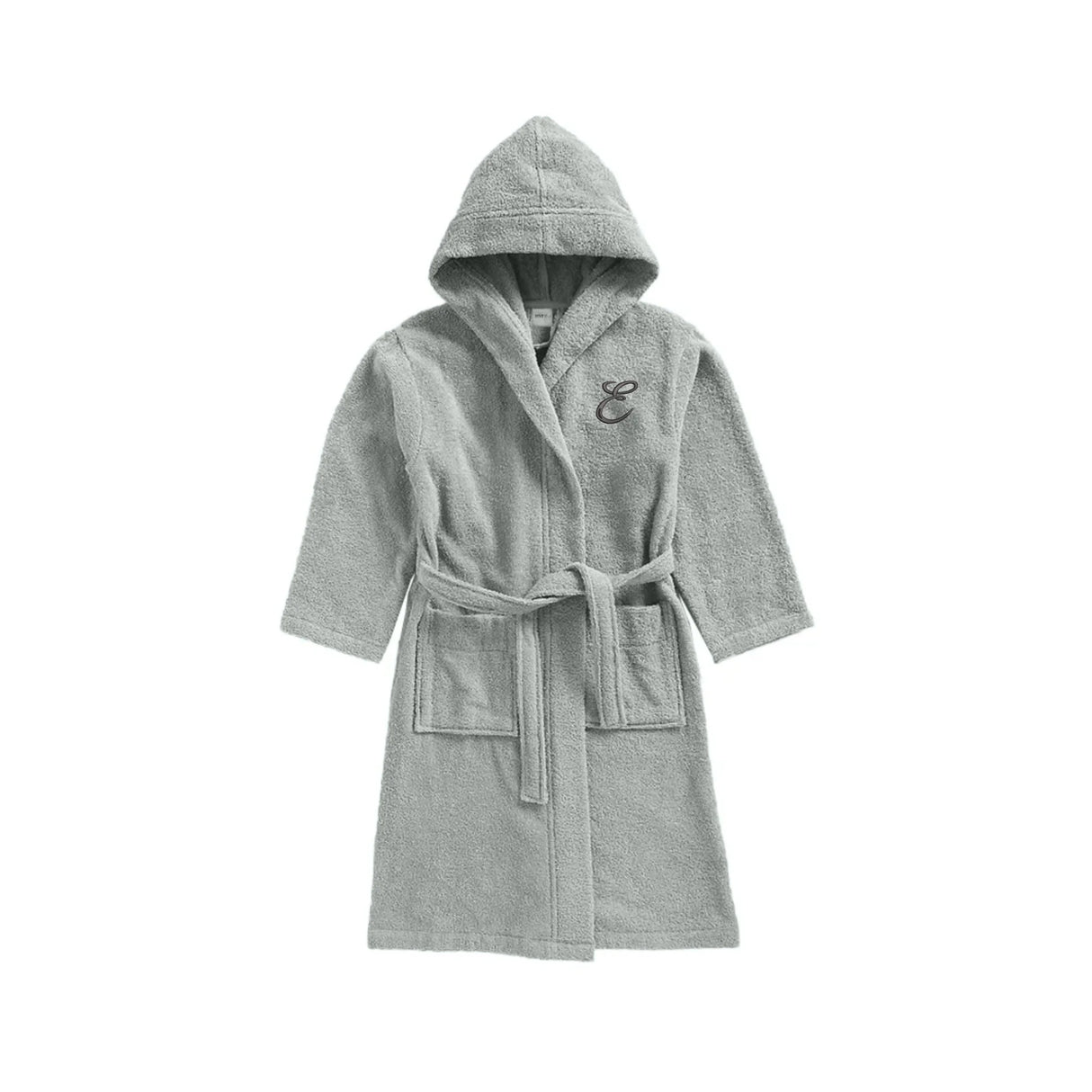 رداء حمام بغطاء رأس للأطفال من BYFT Daffodil | حرف E أحادي اللون | قطن ناعم ومريح