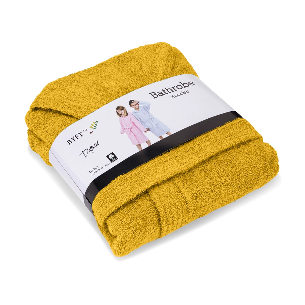 رداء حمام بغطاء رأس للأطفال من BYFT Daffodil | حرف F مطرز | قطن ناعم ومريح