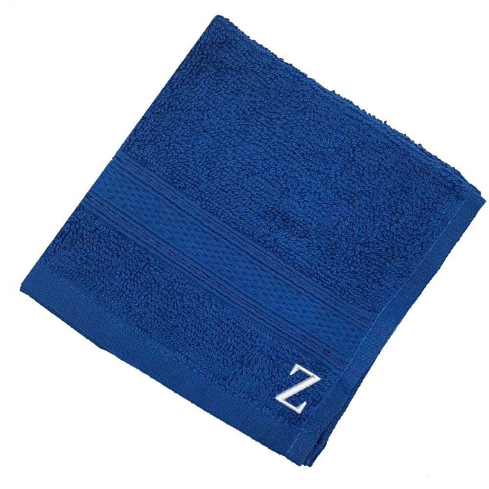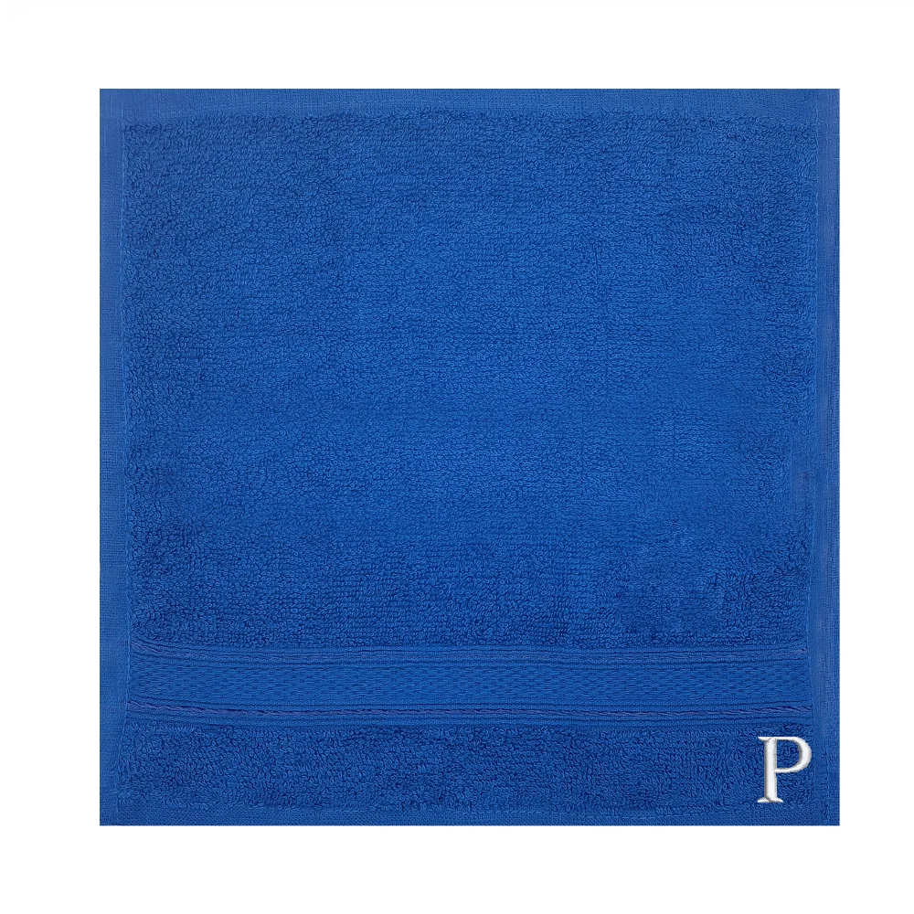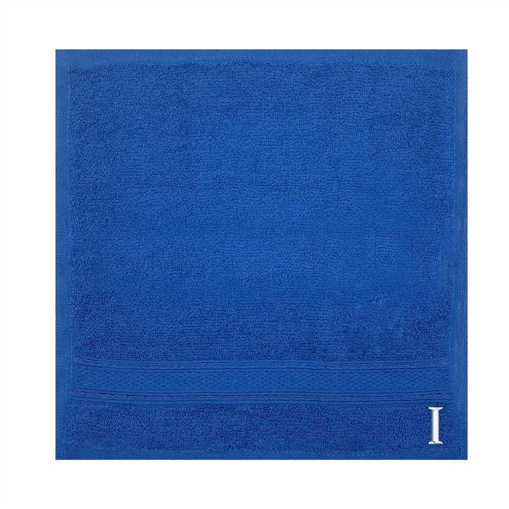 منشفة وجه BYFT Daffodil باللون الأزرق الملكي من القطن الخالص، مطرزة بأحرف أولية/حرف أبجدي/شخصية، مثالية للهدايا، مجموعة من 6 قطع