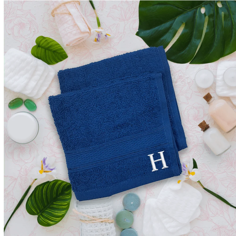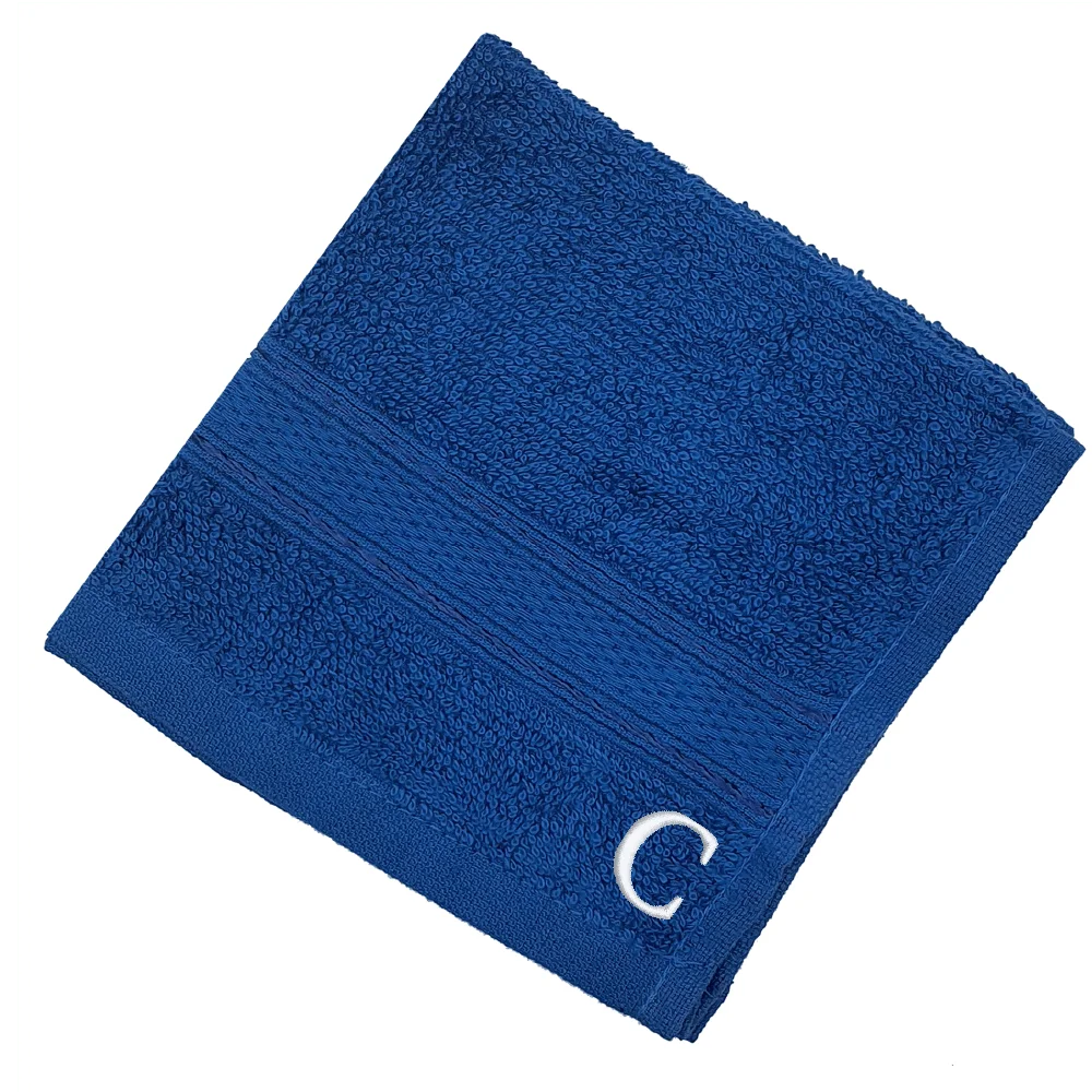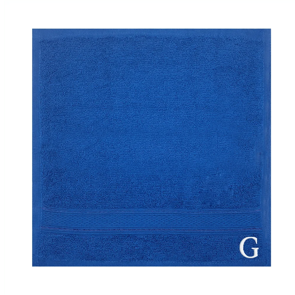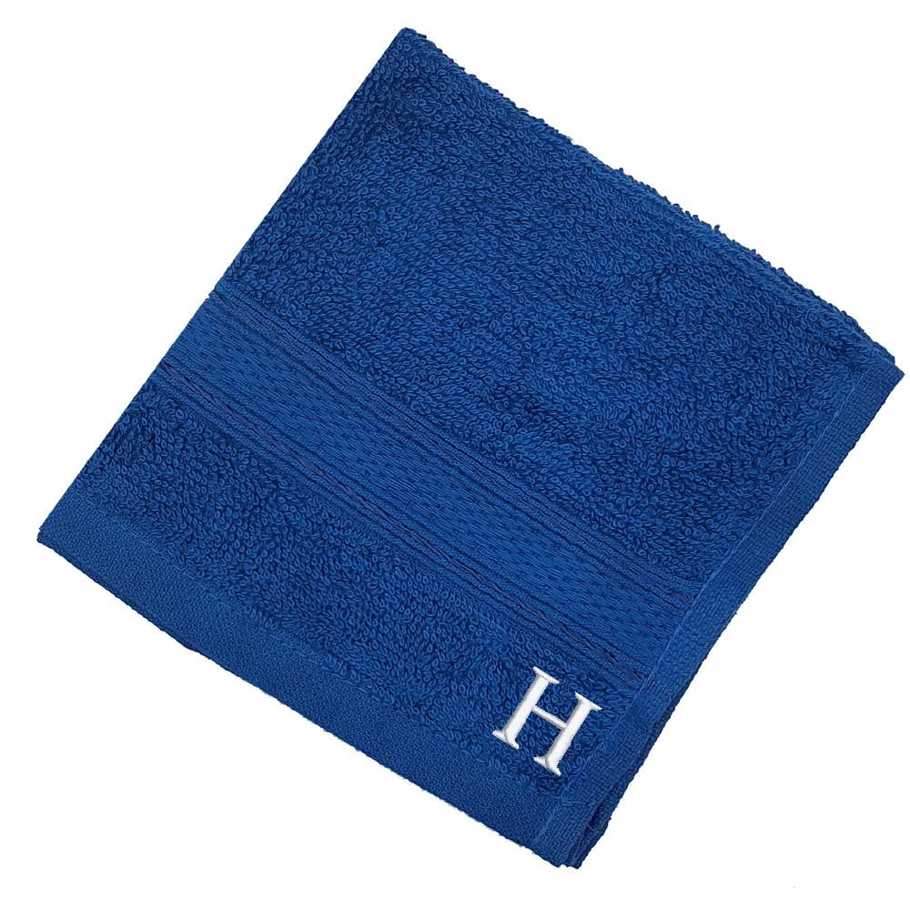 منشفة وجه BYFT Daffodil باللون الأزرق الملكي من القطن الخالص، مطرزة بأحرف أولية/حرف أبجدي/شخصية، مثالية للهدايا، مجموعة من 6 قطع