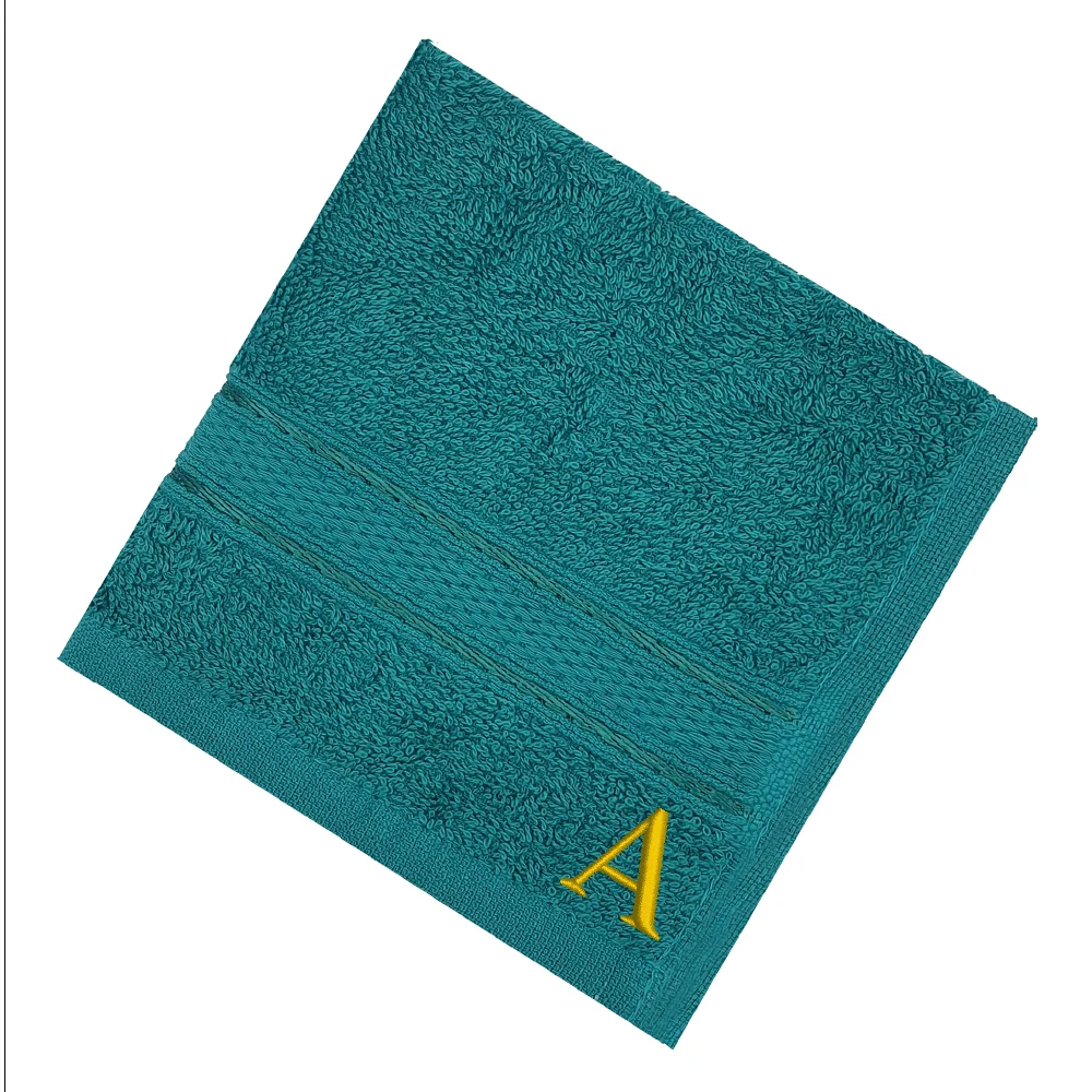 منشفة وجه BYFT Daffodil باللون الأزرق الفيروزي من القطن الخالص، مطرزة بأحرف أولية/حرف أبجدي مخصصة، مثالية للهدايا، مجموعة من 6 قطع - الحرف أ is backordered and will ship as soon as it is back in stock.