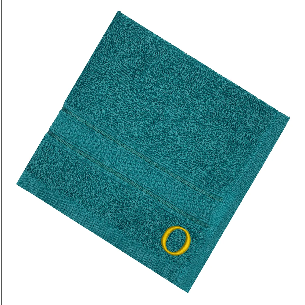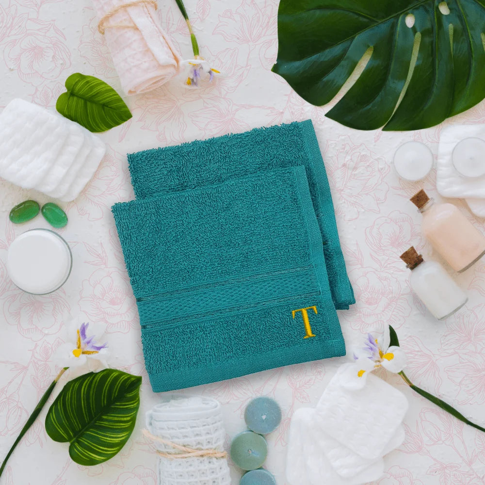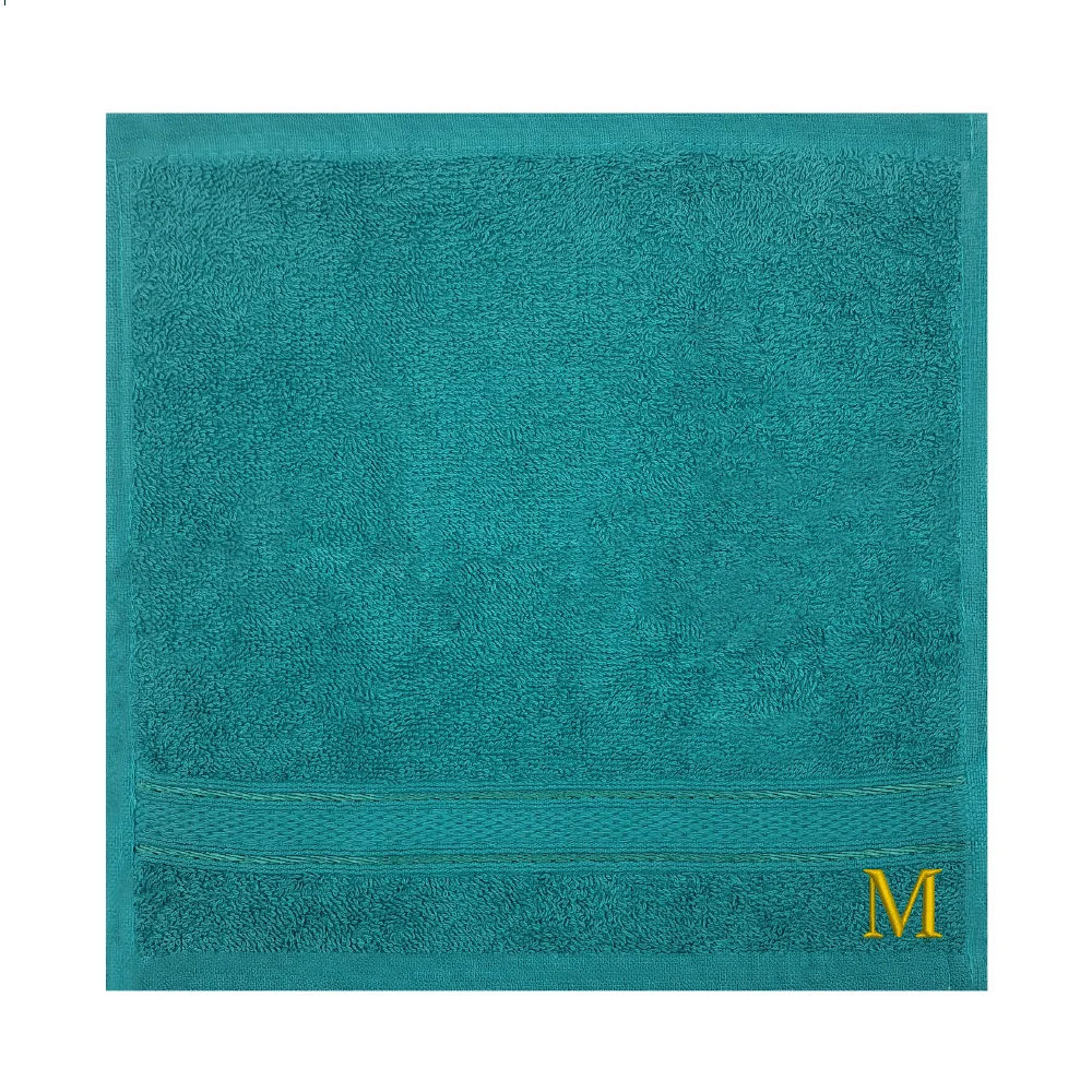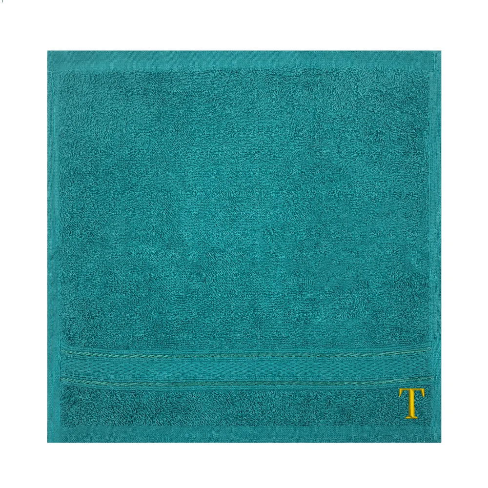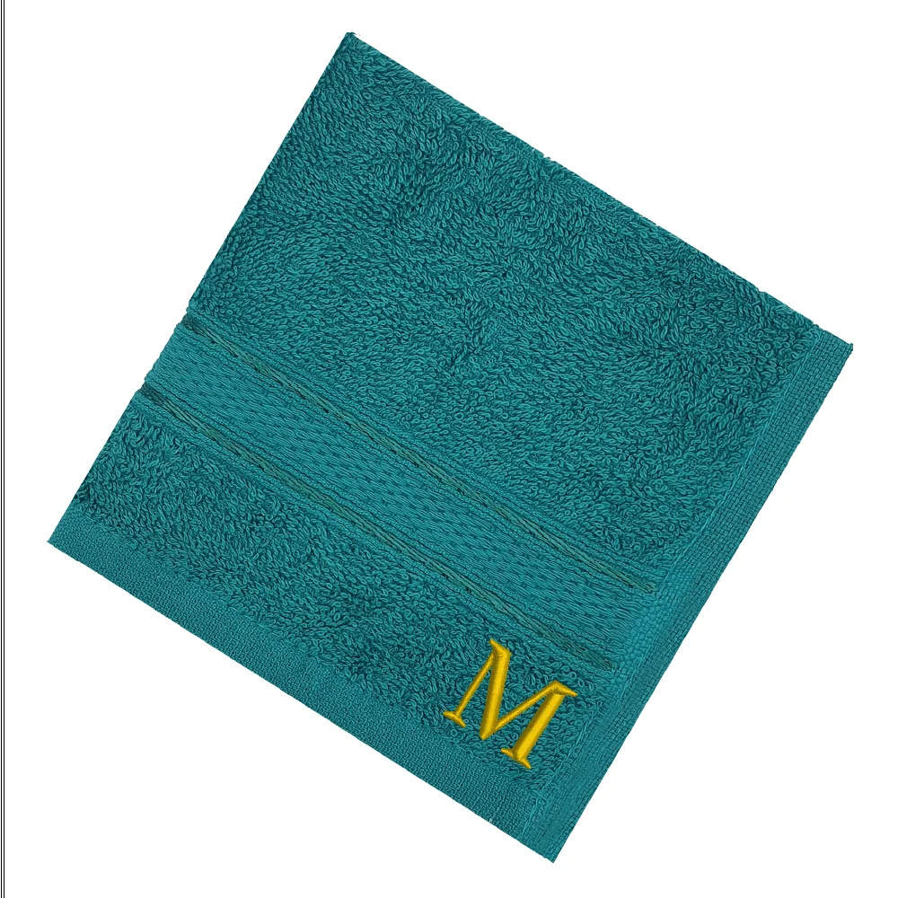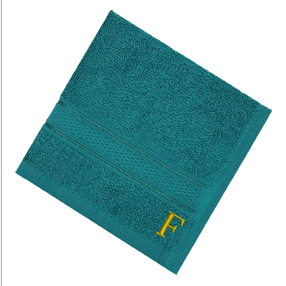منشفة وجه BYFT Daffodil باللون الأزرق الفيروزي من القطن الخالص، مطرزة بأحرف أولية/حرف أبجدي مخصصة، مثالية للهدايا، مجموعة من 6 قطع