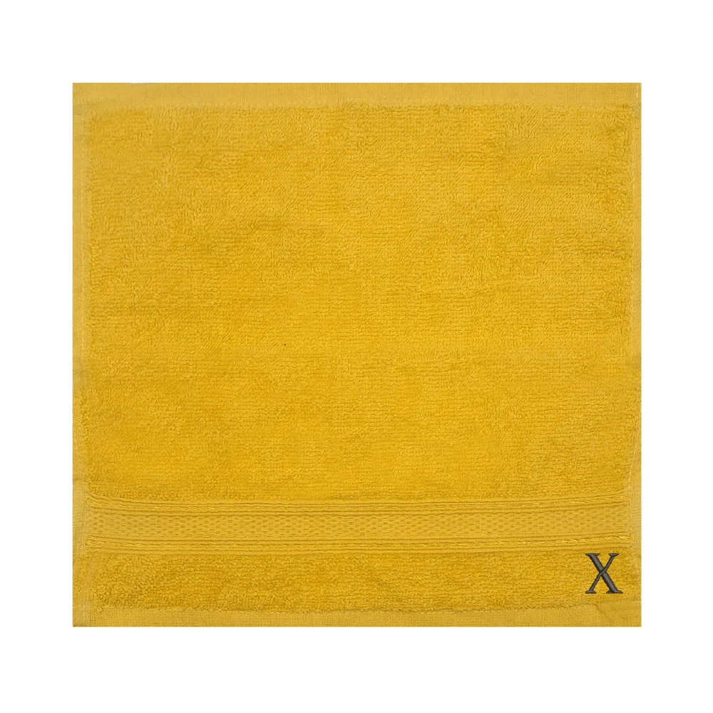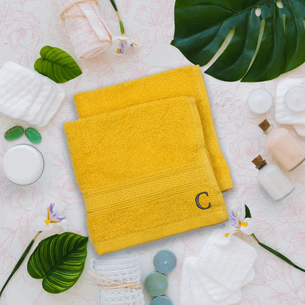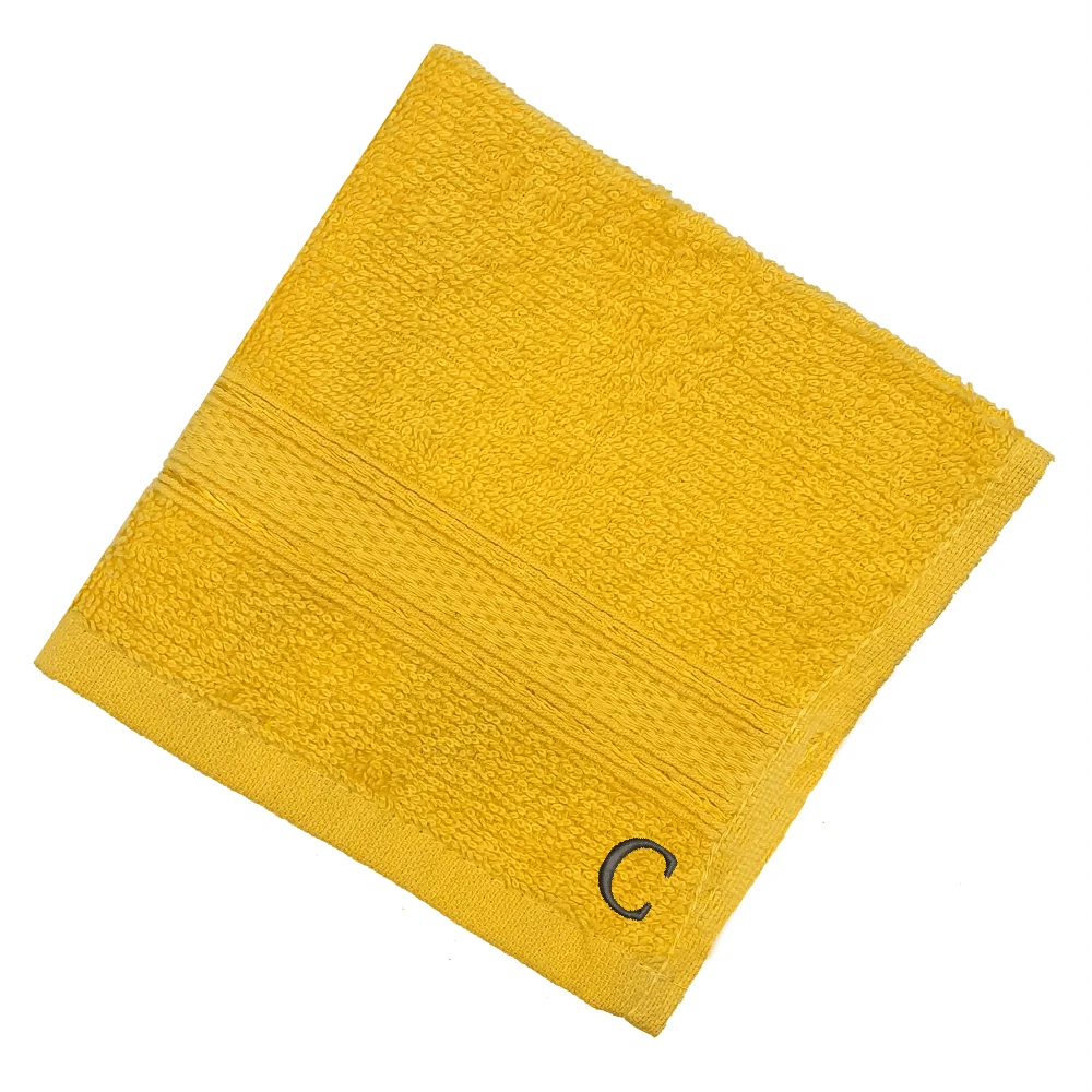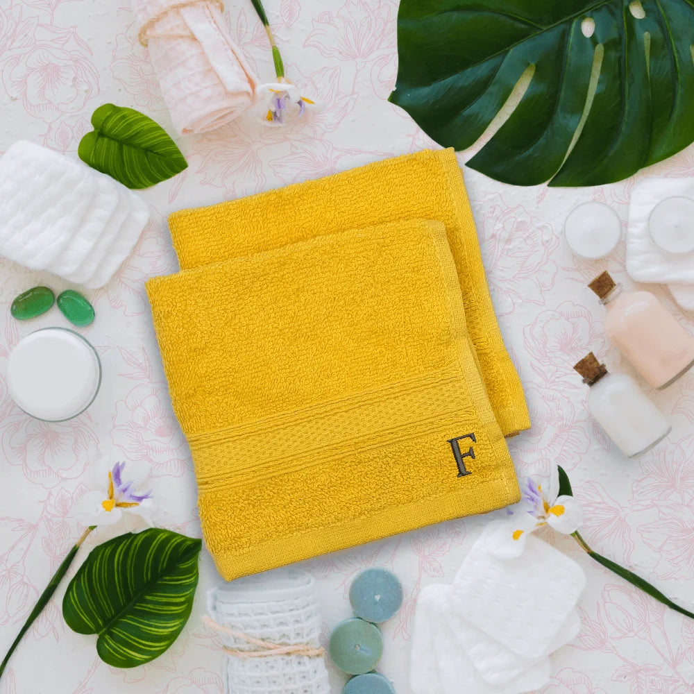منشفة وجه BYFT Daffodil صفراء من القطن الخالص، مطرزة بأحرف أولية/حرف أبجدي مخصصة، مثالية للهدايا، مجموعة من 6 قطع
