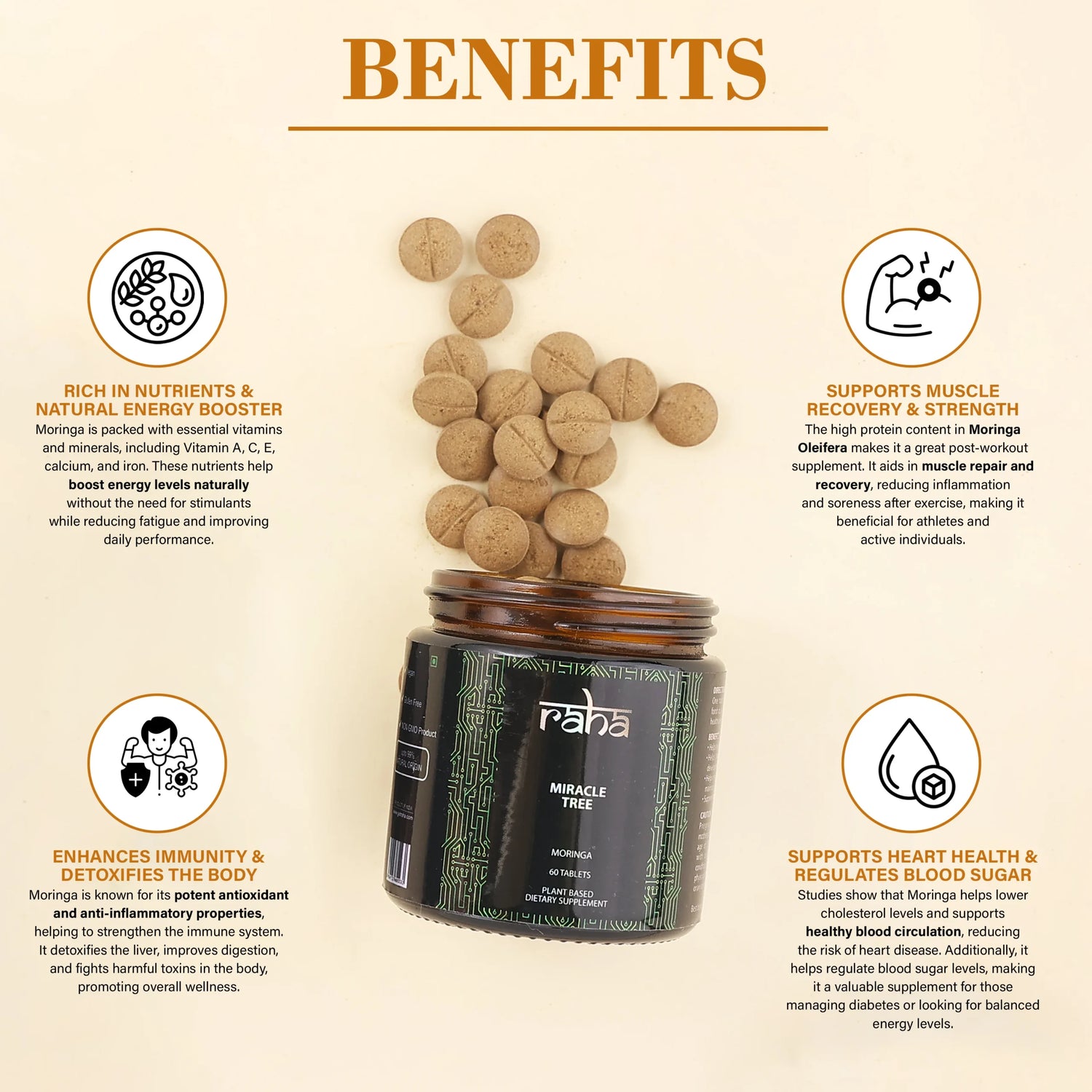 راحة - مكمل غذائي طبيعي ١٠٠٪ من شجرة المورينجا المعجزة، لإزالة السموم من الجسم، وتحسين الهضم وصحة الأمعاء - ٦٠ قرصًا