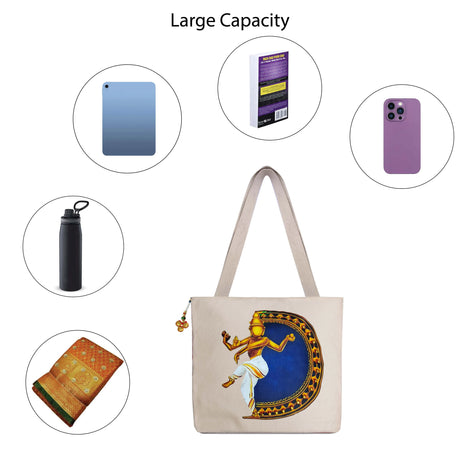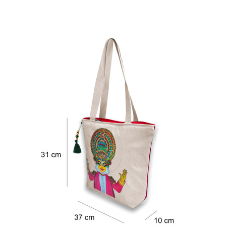 The Purani Jeans Kathakali Canvas Tote Bag | Off-White Denim Handmade Artistic Carry Bag