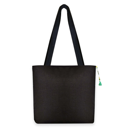 The Purani Jeans Damru Trishul Black Bag | Handmade Denim Spiritual Shoulder Bag
