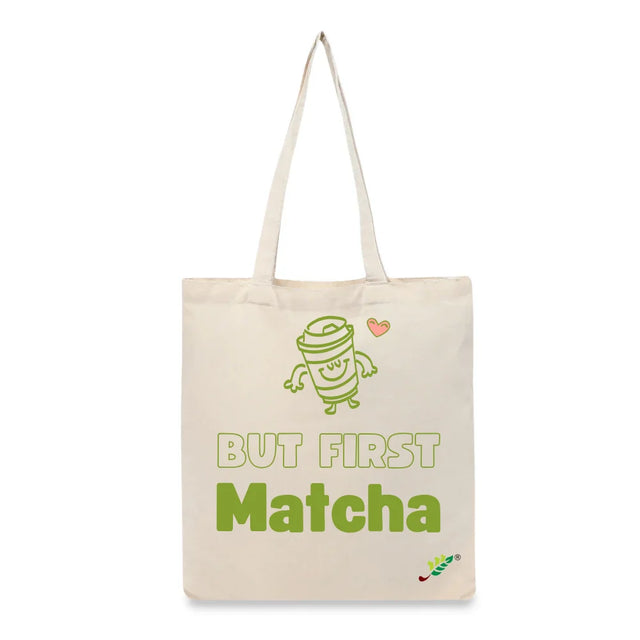 BYFT Cute Typography Tote Bag – “But First Matcha” Playful Printed Tote | Reusable Daily Carry (Set of 1)