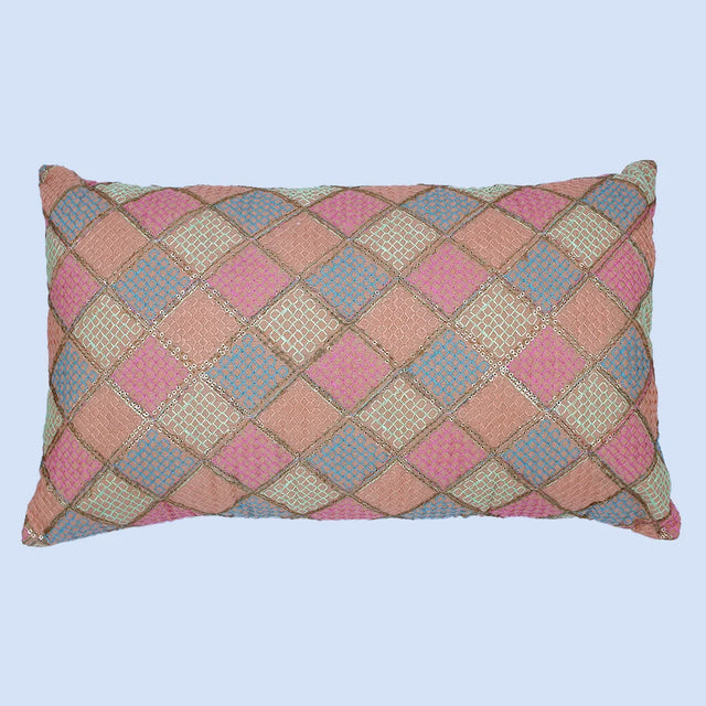 غطاء وسادة BYFT Orchard مقاس 12 × 20 بوصة (تصميم مربعات قطرية - لون خوخي) غطاء وسادة مزخرف فاخر للأريكة والسرير وغرفة المعيشة - مجموعة من قطعتين