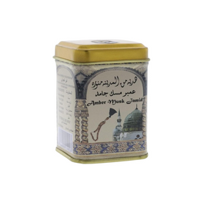 Experience the captivating aroma of Musk Amber Tin 25gm, a luxurious bakhour designed to uplift your space with traditional scents and deep oriental notes.
