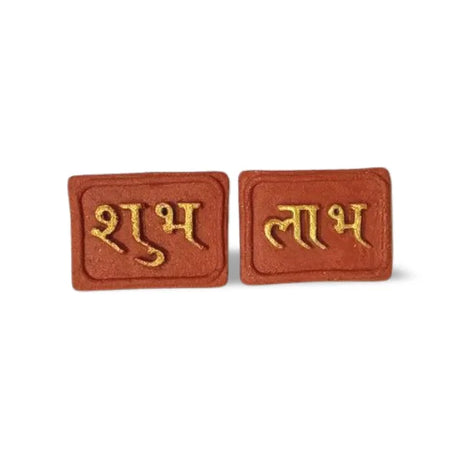 D Viswa Pooja Essentials "Shubh Labh" Made Of Desi Cow Dung Handpainted Assorted Colors 4 Pc Set