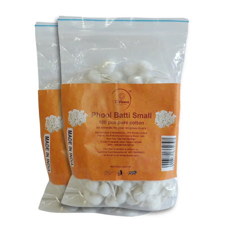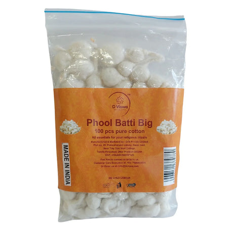 D Viswa Pooja Essentials Phool Batti - Large Cotton Diya Wicks (Set of 2 x 100 Pcs)