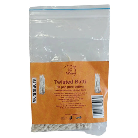 D Viswa Pooja Essentials - Handmade Twisted Batti Cotton Wicks for Pooja Set of 2 x 50 Pcs