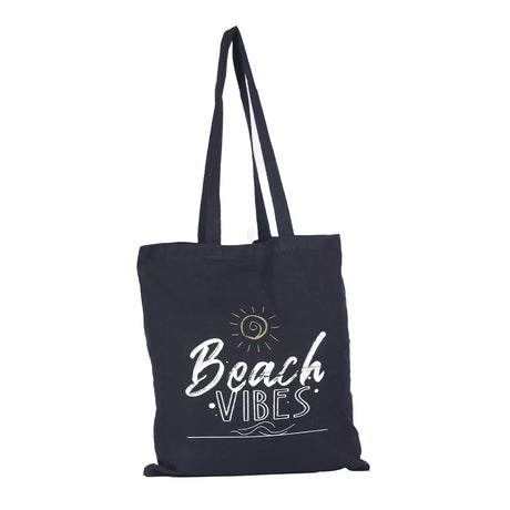 BYFT Black Cotton Flat Tote Bag (Beach Vibes) Design