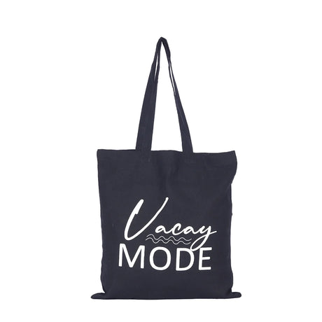 BYFT Black Cotton Flat Tote Bag (Vacay Mode) Design