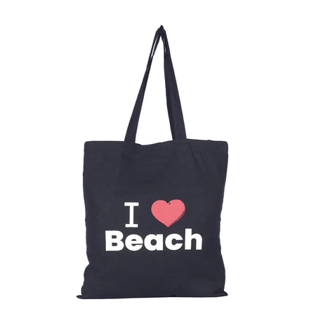 BYFT Black Cotton Flat Tote Bag (I Love Beach) Design